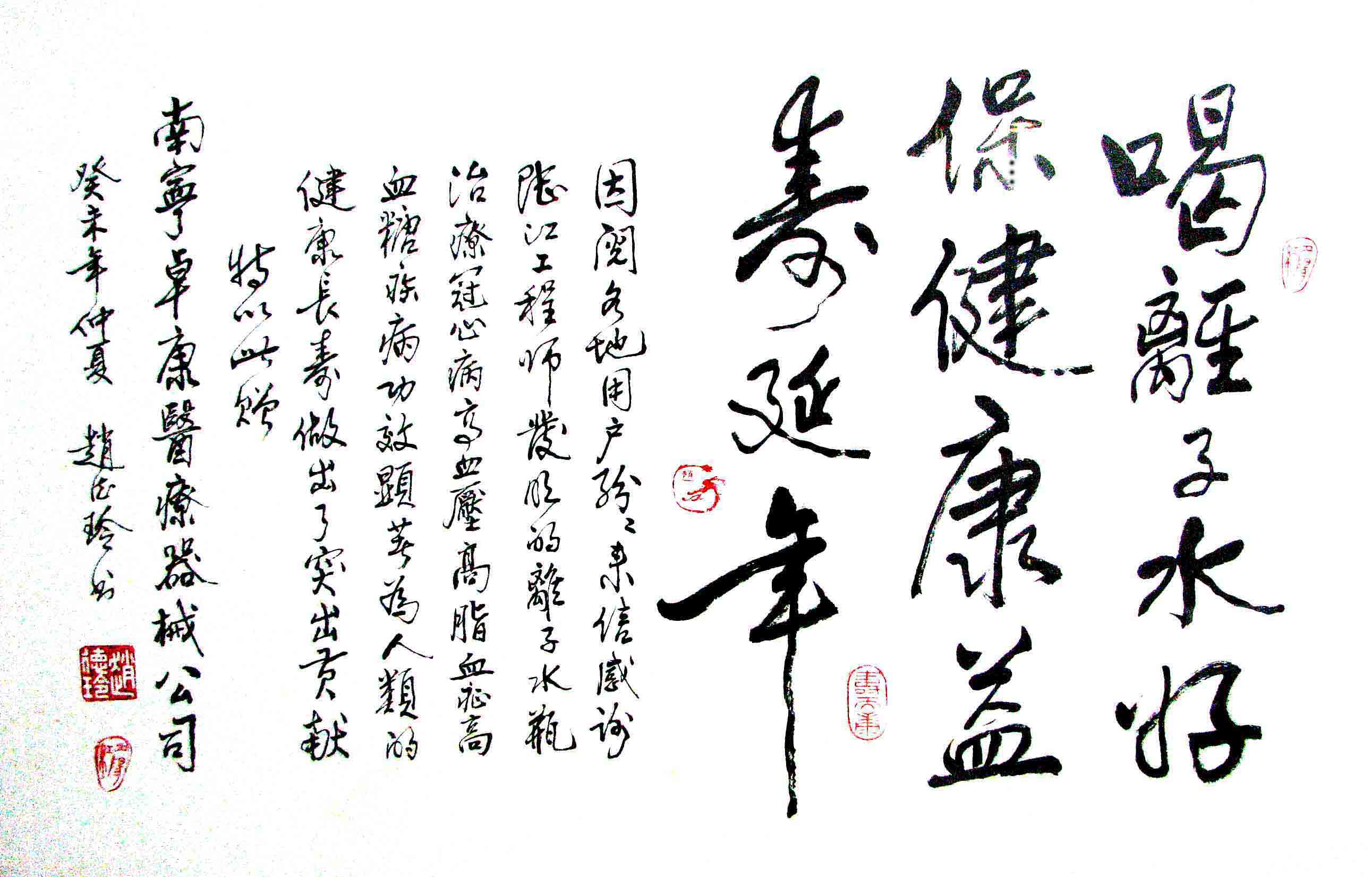 ? --廣告是指在工商部門注冊的有廣告經(jīng)營權的媒體上發(fā)布的收費信息,是付了費的,開了發(fā)票的信息,才算廣告。本企業(yè)網(wǎng)站是企業(yè)向訪問者介紹產(chǎn)品治病機理和實際療效,以及論文和取得的榮譽,兼招商用,并讓讀者詳細了解后郵購產(chǎn)品用的。企業(yè)網(wǎng)站不是廣告,其[用戶反饋]的大量信息,不涉嫌用患者的名義做廣告。人類首創(chuàng)的飲用微小分子團水給脫水細胞補水,可同時治愈幾種依靠藥物不能治愈的疾病,治愈率很高,既讓患者少花錢,又能修復衰弱器官,讓人全面恢復健康,而且延年益壽,呈現(xiàn)出中國醫(yī)學創(chuàng)新發(fā)展的奪目光輝。如果您覺得本網(wǎng)站內(nèi)容真實可信,請各位讀者向親友同事介紹,并請網(wǎng)友以大愛之心在各網(wǎng)站微博中轉載,向更多同胞推薦,以便讓它更多地為人造福。