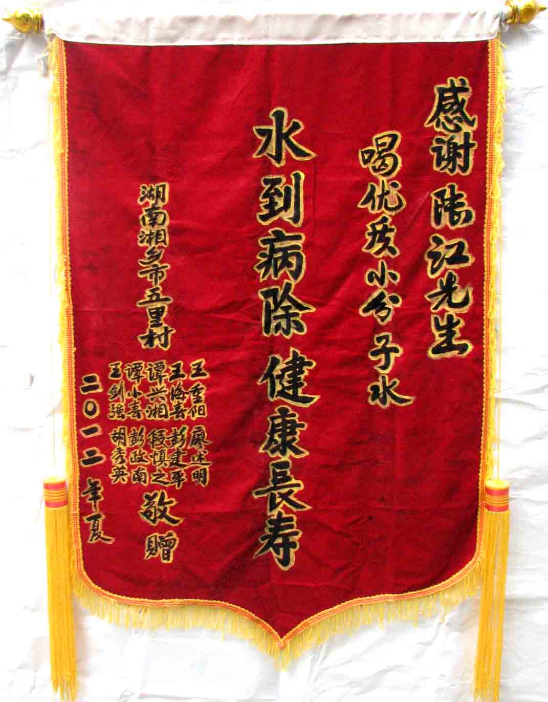 2015年潘志山主動寫一篇感想《我以親身實踐打破了冠心病、高血壓、糖尿病需終生服藥的神話》說堅持按發(fā)明人陸?江先生倡導的用已饑方食的方法合理膳食,我的健康狀況越來越好:糖尿病造成的視力下降有了明顯的恢復,末梢神經(jīng)炎導致的指端潰爛現(xiàn)在完全痊愈,痔瘡自從飲用微小分子團水半年后就再也沒有復發(fā)過,氣滯血瘀造成的嘴唇暗紫也漸漸變得紅潤,舌下靜脈黑紫消失,足背的動脈由以前的隱約感到跳動現(xiàn)在變得清晰有力。[13]潘先生披露的訣竅,一是飲用微小分子團水給脫水細胞補水,二是已饑方食”養(yǎng)生智慧,患者都能做到。